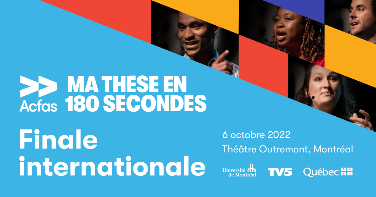 Le concours Ma thèse en 180 secondes est un spectacle festif pendant lequel des doctorant-e-s de présenter leur sujet de recherche en 3 minutes seulement ! Vingt finalistes de partout dans la Francophonie viendront présenter sur scène, et Madame Cosinus slamera les règles de la compétition.