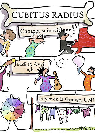Bienvenue au Cubitus Radius cabaret ! Prenez votre fauteuil, dégustez votre soupe et assistez au premier cabaret scientifique de Lausanne ! Des univers scientifiques surgissent autour de cette soirée cosy au foyer de la Grange. Le cabaret rassemblera des artistes québécois, français et suisses et des formes allant du slam, des expériences en direct, un show télévisé dystopique, une chanson d’amour au télescope Hubble…